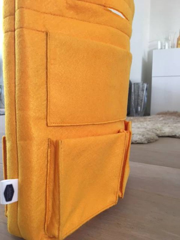Muliply inside and outside pockets. Organizer has a handle.